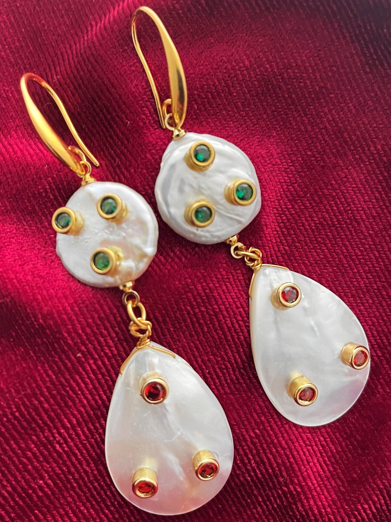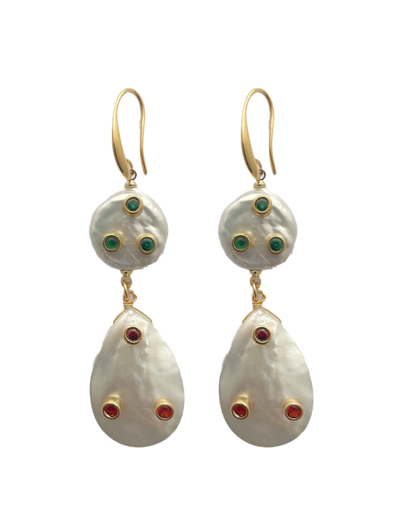 - Matériaux : zircon, perles d'eau douce, plaqué or 18 carats vis de laiton